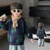 Suéter Infantil para Meninos, Novo Estilo Outono/Inverno 2024, Forrado com Lã e Espesso, Blusa Tricotada Estilosa para Crianças Mais Velhas