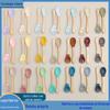 Colher de Silicone Bebê Dourada Cabeça Macia Colher de Temperatura Colher para Comer e Beber Pacote Individual em Cartão