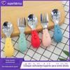 Desenho Animado Aço Inoxidável 304 Colher e Garfo Infantil Conjunto de Talheres de Treinamento para Alimentação de Bebê Colher Portátil para Alimentação de Bebê