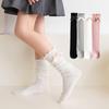 Meias femininas transfronteiriças primavera e outono, cor sólida, meias com laço fofo, estilo princesa, meias de punho para estudantes