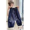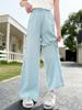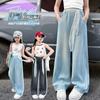 Lenço de Seda Jeans para Meninas 2025 Verão Novo Estilo Estilo Infantil Solto e Fashion Calças Retas Finas de Perna Larga Transfronteiriço
