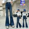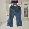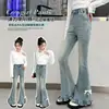 Calças Jeans Flare Primavera e Outono 2024 Nova Moda Meninas Estilo Coreano Infantil Estilo Ocidental Ajuste Slim Flare Roupa Infantil