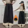 Calças de fleece forradas para meninas, calças de inverno grossas de perna larga para crianças, novo estilo 2025 para crianças de meia-idade e mais velhas, calças casuais estilosas com fleece integrado