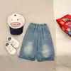 Kouromi Meiletti Jeans para Meninas Novo Estilo Calças Cinco Pontos para Crianças Médias e Grandes Verão Roupa Infantil Versátil Estilo Ocidental Calças Cachorro Jade Gui