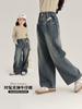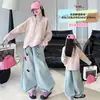 2024 Novas Calças Jeans de Perna Larga para Meninas Primavera e Outono Calças Plissadas Estilosas para Meninas Estilo Coreano Outono
