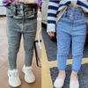 Jeans Feminino Tendência 2025 Novo Estilo Coreano com Forro de Lã, Calça Infantil Estilosa e Versátil