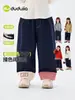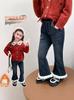 Tai Ru 2025 Inverno Novo Versão Coreana Jeans Casual de Cor Sólida para Crianças Aconchegante Espesso de Lã Durável Calça Comprida Tendência