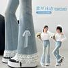 Calça Flare Jeans com Renda e Laço para Meninas Nova Moda Primavera 2025 Calça Slim Fit Stretch para Meninas
