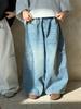 Primavera de 2026 Novo Estilo Coreano Jeans Infantil de Corte Reto com Design Solto Unissex Versátil Casual Calças de Perna Larga
