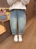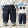 Calças Jeans Infantis para Outono e Inverno, Meninos e Meninas, Jeans Sem Lavagem, Soltas e Versáteis, Calças Lanterna Grossas, Calças Jogger