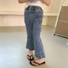 Verão 2024 Novo Estilo Coreano Casual Mais Fácil de Combinar Jeans Flare Elástico Slim Skinny para Crianças Médias e Grandes