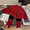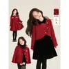 Conjunto para Meninas Amybaby Inverno 2024 Novo Vermelho Chanel Vestido de Alta Qualidade Jaqueta de Lã e Algodão
