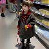 Casaco de lã para meninas Outono e inverno High-end estilo ocidental infantil solto retrô de comprimento médio grande casaco engrossado infantil