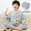Pijamas para meninas do sudeste da Ásia primavera e outono meninos manga longa terno infantil desenho animado fofo meninas bebê roupas para casa outono