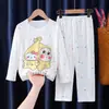 Pijama Infantil Primavera e Outono Desenho Animado Fofo Manga Longa Conjunto Fino para Crianças Meninas Bebês Roupas para Casa com Ar Condicionado