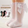 Meias infantis de verão, novas meias de malha oca, meias de tubo, arco, espanhol, cor sólida, respirável, meias infantis, atacado
