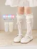 Meias de Renda Lolita 2026 Verão Novo Cor Sólida Malha Laço Alta Elasticidade Meias Longas Infantis
