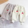 2022 Vestido de inverno para meninas estilo ocidental bonito Calças de moletom forradas de lã Calças infantis engrossadas e quentes para crianças pequenas e médias