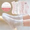 Meias Infantis Primavera e Verão Malha Finas Respiráveis Meias de Meia Panturrilha Sem Costura Renda Babado Meninas Princesa Criança Meias da Moda