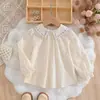 Doce Ruffled Meninas Brancas Rendas Infantis Coreano Bebê Camisa de Manga Comprida Top Camisa Roupas Femininas no Exterior