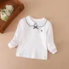 Camisa de Manga Longa para Meninas 2025 Outono Nova Gola Boneca Bordada Gola Reversível Estilo College Pulôver Top 100% Algodão Tendência