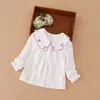 Camisa Gola Peter Pan Feminina 2024 Outono e Inverno Nova Infantil Desenho Bordado Gola Lapela Estilo College Top Algodão Roupa Infantil