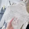 Camisa de Renda para Meninas Primavera e Verão Manga Longa Camiseta 2022 Novo Estilo Moda Infantil Menina Roupa Íntima Branca