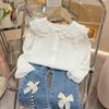 Camiseta Feminina 2024 Outono e Inverno Nova Gola de Renda Estilo Acadêmico Simples Feminina Bebê Casual Roupa Infantil Top