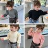 [Novos produtos de outono] 24 Outono Menina Madeira-orelha Base Camisa Infantil Coreano Cor Sólida Creme Stretch Top