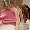 Camiseta Base de Malha Outono/Inverno 2025 para Meninos e Meninas, Suéter Infantil Versátil Estilo Coreano com Gola Alta Meia e Forro de Lã para Crianças Pequenas