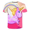 Nova camiseta de verão 2022 Menina Unicórnio infantil desenho animado poliéster top para meninas fofas