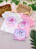 2025 Nova Camiseta de Manga Curta de Verão para Meninas Estilo Europeu e Americano Estampa de Desenho Animado Camiseta de Manga Curta Fofa de Verão para Meninas Kidsren