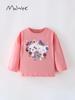 Malwee menina T-shirt outono novas meninas assentamento camisa estilo ocidental impresso em torno do pescoço europeu e americano top das crianças