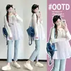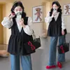 Moda Outono 2025 Roupas de Maternidade Patchwork Soltas Casuais Tops Femininos Novo Estilo Coreano Redução de Idade Tamanho Grande Camisas de Maternidade