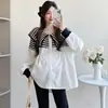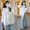 Blusa de Maternidade 2025 Início da Primavera Nova Moda Bordada Fina Leite Huhu Solta Modeladora Camisa Boneca