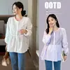 2025 Primavera Roupas de Maternidade Estilo Coreano Casual Solto Camisa de Manga Comprida Nova Moda Simples Lapela Feminina Camisa para Mulheres Grávidas