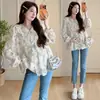 Em Estoque 2025 Novo Estilo Outono Maternidade Casual Doce Camiseta Renda Costurada Estilo Pequeno Perfumado Camisa Baby Doll Maternidade