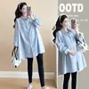 Casaco de maternidade 2024 outono precoce novo versão coreana solto plus size barriga de grávida casual moda mãe camisa longa