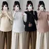 Moda Gestante Primavera 2026 Novo Conjunto Doce Cor Sólida Elegante Emagrecedor Top Camisa Boneca Moda Outerwear Petite