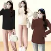 Roupa de Maternidade Personalizada Veludo Alemão Escovado Dupla Face Roupa Íntima Estilo Quente Xiaohongshu Outono e Inverno Borda Franzida Camisa Básica Versátil