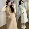 Vestido Suéter de Lã Doce Coreano, Para Usar na Gravidez, Bolsa Camada, Look Emagrecedor Outono e Inverno Novo Conjunto Maternidade