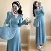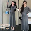 Roupa de Gravidez Estilo Coreano 2026 Primavera Novidades Vestido de Tricô Liso Simples com Xale Vestido de Maternidade de Comprimento Médio