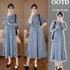 Roupas para mulheres grávidas primavera e verão novo estilo coreano listrado elegante emagrecimento vestido de camisa para mulheres grávidas fivela aberta amamentação