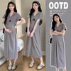 Em estoque Vestido de Grávida Verão Moda Solto Emagrecimento Manga Curta Vestido Longo Vestido Feminino Preguiçoso