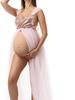Em estoque Vestido para gestantes Rosa Doce Ombro a Ombro Vestido Longo Verão Novo Estilo Suave Vestido para gestantes