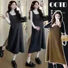 Moda Gestante Outono e Inverno Novo Estilo Coreano Fashionable Emagrecedor Saia de Suspensório Camisa Base Conjunto de Duas Peças Vestido de Maternidade