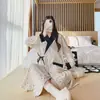 Camisola de noite para grávidas primavera e outono fio de camada dupla manga comprida tecido saia de amamentação pós-parto verão fio de algodão crepe saia de confinamento para mãe grávida Quatro Estações