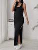 Vestido Longo Tricotado Sexy Slim de Cor Sólida Europeu e Americano Transfronteiriço Versátil Vestido de Maternidade Fenda Sem Costas Justo