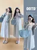 Vestido Interno de Cobertura da Barriga Solto para Outono Inicial + Saída de Praia com Recortes Conjunto de Duas Peças em Camadas para Maternidade