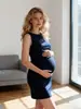 Vestuário de Maternidade Processado e Personalizado Primavera e Verão Vestido Sem Mangas Listrado Roupa de Trabalho Efeito Emagrecedor Exclusivo para Gravidez Roupas Femininas Saia de Maternidade